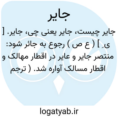 جایر. [ ی ِ ] ( ع ص ) رجوع به جائر شود: منتصر جایر و عایر در اقطار مهالک و اقطار مسالک آواره شد. ( ترجمه تاریخ یمینی ص 184 ). ج، جایرون. ( مهذب الاسماء ).