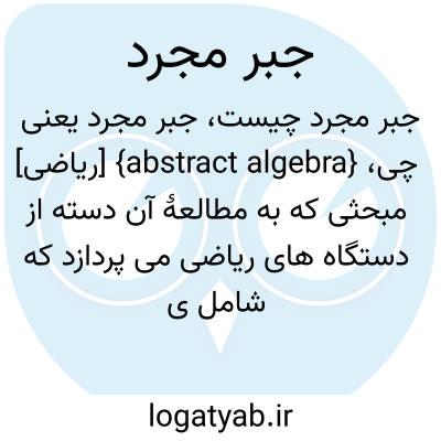 {abstract algebra} [ریاضی] مبحثی که به مطالعۀ آن دسته از دستگاه های ریاضی می پردازد که شامل یک مجموعه و یک یا چند عمل دوتایی و چند قاعده برای عمل متقابل اعضا و اعمال دوتایی برهم باشد