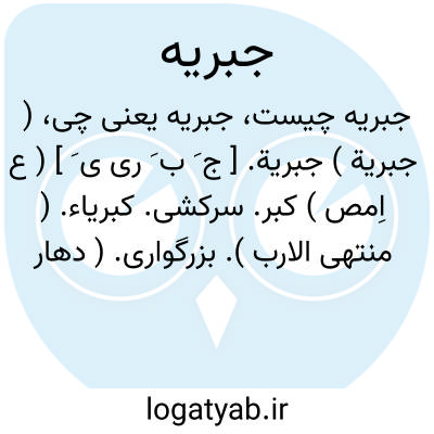 ( جبریة ) جبریة. [ ج َ ب َ ری ی َ ] ( ع اِمص ) کبر. سرکشی. کبریاء. ( منتهی الارب ). بزرگواری. ( دهار ). جِبَریّه. ( منتهی الارب ). جِبِریّه جَبَریّه. ( منتهی الارب ). رجوع به ذیل هر یک از کلمات فوق شود.