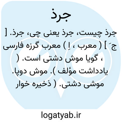 جرذ. [ ج َ ] ( معرب، اِ ) معرب گرزه فارسی، گویا موش دشتی است. ( یادداشت مؤلف ). موش دوپا. موشی دشتی. ( ذخیره خوارزمشاهی ).