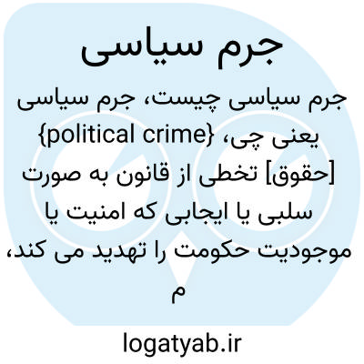 {political crime} [حقوق] تخطی از قانون به صورت سلبی یا ایجابی که امنیت یا موجودیت حکومت را تهدید می کند، مانند جاسوسی و توطئه و خیانت و آشوب