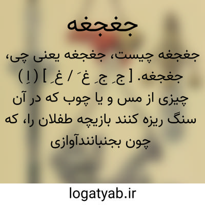 جـِغجغه : اسباب بازی کودکان = ( جِ جِ غِ ) ( اِ. ) نوعی اسباب بازی کودکان شبیه قوطی که موقع تکان دادن صدا از آن برآید. ( از فرهنگ نامۀ معین )