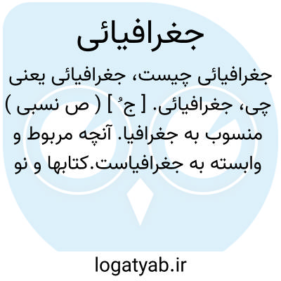 جغرافیائی. [ ج ُ ] ( ص نسبی ) منسوب به جغرافیا. آنچه مربوط و وابسته به جغرافیاست.کتابها و نوشته هائی که مربوط به علم جغرافیا است.