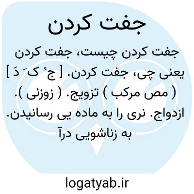 چشم او را باصور میکرد جفت.مولوی. || دو کردن. دوگان ساختن یکانی را. فردی را زوج کردن. نظیر و عدیل چیزی را در کنار او نهادن تا جفت شود.