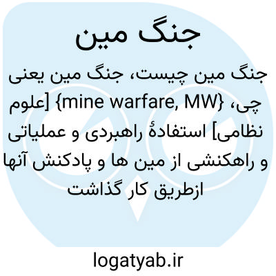 {mine warfare, MW} [علوم نظامی] استفادۀ راهبردی و عملیاتی و راهکنشی از مین ها و پادکنش آنها ازطریق کار گذاشتن مین برای کاهش توانمندی های دشمن در به راه انداختن جنگ زمینی و هوایی و دریایی یا ازطریق مقابله با مین های کارگذاشته شدۀ دشمن برای امکان پذیر کردن رزمایش نیروهای...