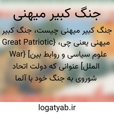 {Great Patriotic War} [علوم سیاسی و روابط بین الملل] عنوانی که دولت اتحاد شوروی به جنگ خود با آلمان نازی در فاصلۀ سال های 1941 تا 1945 داده بود