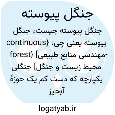 {continuous forest} [مهندسی منابع طبیعی- محیط زیست و جنگل] جنگلی یکپارچه که دست کم یک حوزۀ آبخیز را در بر گیرد و چشم انداز غالب منطقه را تشکیل دهد