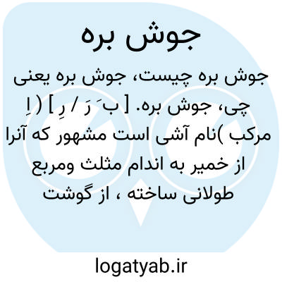 جوش بره. [ ب َ رَ / رِ ] ( اِ مرکب )نام آشی است مشهور که آنرا از خمیر به اندام مثلث ومربع طولانی ساخته، از گوشت و سبزی و مصالح پر کنند و در آب جوشانند و ماست و کشک بر بالای آن ریخته بخورند، و با جیم و بای فارسی ( چوش پره ) آمده است. جوشن بره. ( از برهان ). جوش بیره. ( غیاث اللغات ):