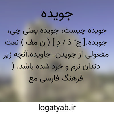 جویده.[ ج َ دَ / دِ ] ( ن مف ) نعت مفعولی از جویدن. جاویده.آنچه زیر دندان نرم و خرد شده باشد. ( فرهنگ فارسی معین ). || جویده جویده گفتن؛ ناواضح گفتن.