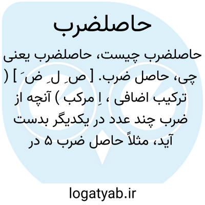 حاصل ضرب. [ ص ِ ل ِ ض َ ] ( ترکیب اضافی، اِ مرکب ) آنچه از ضرب چند عدد در یکدیگر بدست آید، مثلاً حاصل ضرب 5 در 6، سی باشد: 30 = 6 * 5.