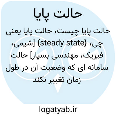 {steady state} [شیمی، فیزیک، مهندسی بسپار] حالت سامانه ای که وضعیت آن در طول زمان تغییر نکند