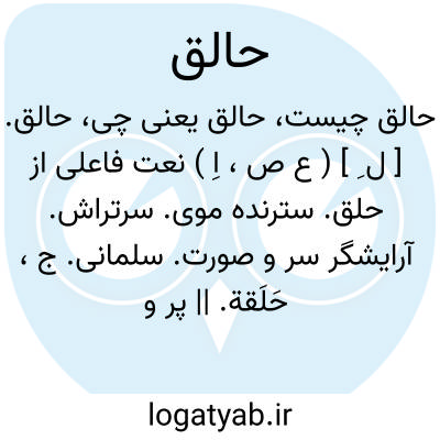 حالق. [ ل ِ ] ( ع ص، اِ ) نعت فاعلی از حلق. سترنده موی. سرتراش. آرایشگر سر و صورت. سلمانی. ج، حَلَقة. || پر و مملو. || بَدْیُمْن. ( منتهی الارب ). مشئوم. || پستان پرشیر. ج، حُلَّق، حوالق. ( مهذب الاسماء ) ( منتهی الارب ). || تاک بررفته بردرخت. || کوه بلند. ( منتهی الارب ). جبل مرتفع. جای بلند: جاء من حالق؛ ای من مکان مشرف. لاتفعل کذا امک حالق؛ نفرینی است؛ یعنی چنین مکن مادرت تراگم کناد، و در گم شدن تو موی سر برکناد و بستراد.