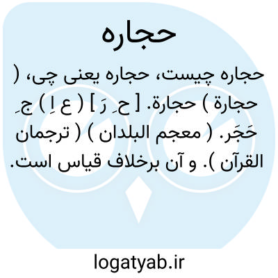 ( حجارة ) حجارة. [ ح ِ رَ ] ( ع اِ ) ج ِ حَجَر. ( معجم البلدان ) ( ترجمان القرآن ). و آن برخلاف قیاس است. و در دستور اللغة ادیب نطنزی آمده است که حجارة جمع حجرة است. حجاره. سنگها: