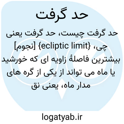 {ecliptic limit} [نجوم] بیشترین فاصلۀ زاویه ای که خورشید یا ماه می تواند از یکی از گره های مدار ماه، یعنی نقاط تلاقی با دایره البروج، داشته باشد تا گرفتِ ماه یا خورشید رخ دهد
