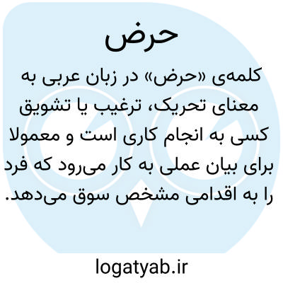 کلمه‌ی «حرض» در زبان عربی به معنای تحریک، ترغیب یا تشویق کسی به انجام کاری است و معمولاً برای بیان عملی به کار می‌رود که فرد را به اقدامی مشخص سوق می‌دهد، به‌ویژه وقتی قصد و انگیزه در آن نقش دارد. این واژه در متون دینی و ادبی عربی کاربرد فراوان دارد و می‌تواند هم مثبت باشد، مانند تشویق به کار نیک، و هم منفی، مانند تحریک به گناه یا ظلم. ریشه‌ی حرض در عربی به معنای برانگیختن و وادار کردن است و نشان‌دهنده تأثیرگذاری بر اراده یا تصمیم فرد دیگر است. در قرآن و احادیث، «حرض» معمولاً برای اشاره به کسانی به کار رفته که دیگران را به فساد، جنگ یا گناه وادار می‌کنند و گاهی با عبارات مشابه مانند «یحرّضون» یا «استحرض» همراه است. این واژه با مفاهیمی مانند تشویق، ترغیب، تحریک، وادار کردن و برانگیختن هم‌معنی است و در مکالمات روزمره و متون رسمی عربی کاربرد دارد.