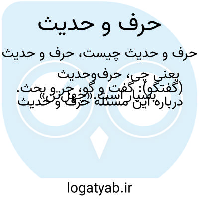 (گفتگو): گفت و گو، جر و بحث. درباره این مسئله حرف و حدیث بسیار است.‌«چهل‌تن»