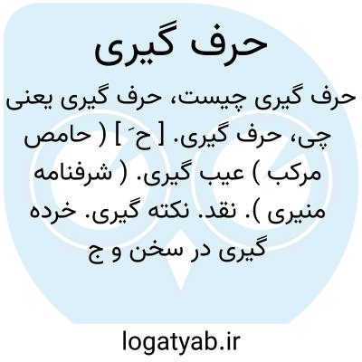 * حرف گیری کردن: (مصدر لازم ) [قدیمی، مجاز] عیب جویی کردن: گر انگشت من حرف گیری کند / ندانم کسی کاو دبیری کند (نظامی۵: ۷۸۳ ).