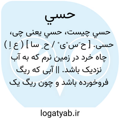 حسی. [ ح ِس ْی ْ ] ( ع مص ) کندن و بیرون آوردن آب از میان ریگ. || حسی ضمیر کسی؛ دانستن ما فی الضمیر او.