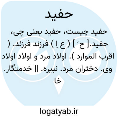 حفید.[ ح َ ] ( ع اِ ) فرزند فرزند. ( اقرب الموارد ). اولاد مرد و اولاد اولاد وی. دختران مرد. نبیره. || خدمتگار. خادم. || یاری گر. ناصر. حافد.
