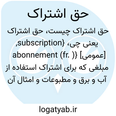 {subscription, abonnement (fr. )} [عمومی] مبلغی که برای اشتراک استفاده از آب و برق و مطبوعات و امثال آن پرداخت شود