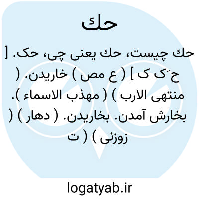 حک. [ ح َک ک ] ( ع مص ) خاریدن. ( منتهی الارب ) ( مهذب الاسماء ). بخارش آمدن. بخاریدن. ( دهار ) ( زوزنی ) ( تاج المصادر بیهقی ). || خارانیدن. خاراندن. || سائیدن. سودن. بسودن. ( منتهی الارب ). || خلانیدن. || خلیدن چیزی در دل. ( تاج المصادر بیهقی ). خلیدن در دل: حک فی صدری؛ خلید در دل من. ماحک فی صدری شیی ٔ؛ منشرح نشدبهر او دل من و ماند در او چیزی از شک و ریب. ( منتهی الارب ). پیچیدن چیزی در دل. ( زوزنی ). خلیدن در سینه. || خراشیدن. ( منتهی الارب ). رندیدن. || تراشیدن. ( دهار ). حت. طَمس. ستردن. محو کردن. || بر محک نهادن: گویند حک الذهب بالمحک و آن هنگامی است که بخواهد طلا را بیازماید و عیار آن بشناسد. ( اقرب الموارد ). || کندن نگین و مانند آن. مهره سائی کردن. || دور کردن. || درو کردن. || ( ص ) تراشیده شده. ( آنندراج ):