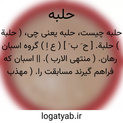 ( حلبة ) حلبة. [ ح َ ب َ ] ( ع اِ ) گروه اسبان رهان. ( منتهی الارب ). || اسبان که فراهم گیرند مسابقت را. ( مهذب الاسماء ). اسبان که بجهت دوانیدن جمع کنند از هر جا در یک اصطبل. ( منتهی الارب ). || مجازاً، به معنی میدان. ( یادداشت مرحوم دهخدا ). || مردم که برای یاری آینداز هر سوی. ج، حلائب و حلبات. ( منتهی الارب ). || یکی حَلب. یکبار دوشیدن. ( از اقرب الموارد ).