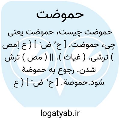 حموضت. [ ح ُ ض َ ] ( ع اِمص ) ترشی. ( غیاث ). || ( مص ) ترش شدن. رجوع به حموضة شود.