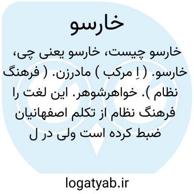 خارسو. ( اِ مرکب ) مادرزن. ( فرهنگ نظام ). خواهرشوهر. این لغت را فرهنگ نظام از تکلم اصفهانیان ضبط کرده است ولی در لهجه تهرانیان همان خواهر است: