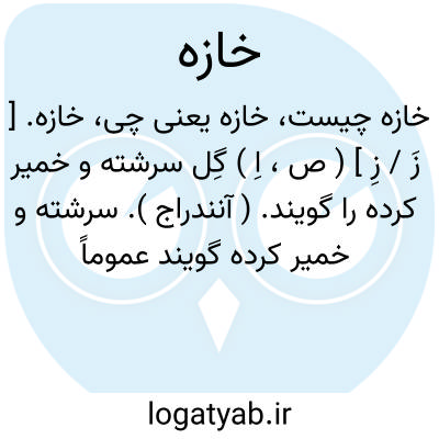 خازه. [ زَ / زِ ] ( ص، اِ ) گِل سرشته و خمیر کرده را گویند. ( آنندراج ). سرشته و خمیر کرده گویند عموماً و گلابه و گلی که بر دیوارها مالند خصوصاً. ( برهان قاطع ) ( فرهنگ سروری ) ( غیاث اللغة ). گل سرشته به جهت دیوار و غیره و هر چیز سرشته و خمیر کرده. ( فرهنگ جهانگیری ) ( فرهنگ شعوری ج 1 ورق 378 ). طین لازب. چسبنده. لزج. خَضار. ( مهذب الاسماء ). گل سرشته که بتازیش حسیر ( ظ: خمیر ) خوانند. ( شرفنامه منیری ). گل پاکیزه خوشبوی. برچفسان سبز. غضاره. غضار: