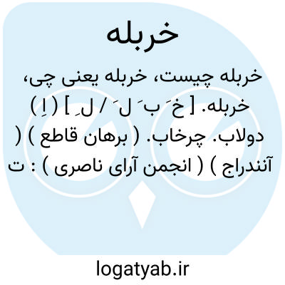 خربله. [ خ َ ب َ ل َ / ل ِ ] ( اِ ) دولاب. چرخاب. ( برهان قاطع ) ( آنندراج ) ( انجمن آرای ناصری ):