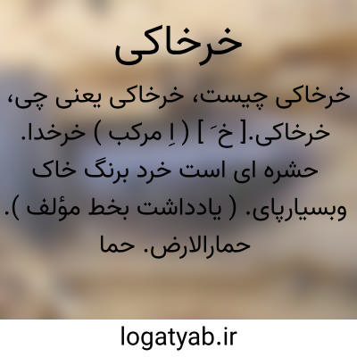 خرخاکی.[ خ َ ] ( اِ مرکب ) خرخدا. حشره ای است خرد برنگ خاک وبسیارپای. ( یادداشت بخط مؤلف ). حمارالارض. حمارالبیت. حمارقبان. هدبة. عیرقبان. ( یادداشت بخط مؤلف ).