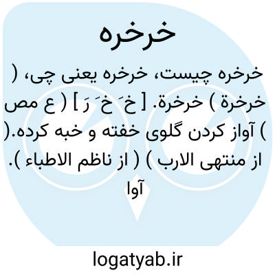 خرخرة. [ ] ( اِخ ) نام یکی از دو نفر رسولی است که ملک یمن خدمت جناب نبوی فرستاد بجهت امتثال امر خسرو و خبر دادن رسول صلی اﷲعلیه وآله قتل خسرو را. رجوع شود به حبیب السیر چ 1 تهران ص 130 و 170.