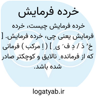 خرده فرمایش. [ خ ُ دَ / دِ ف َ ی ِ ] ( اِ مرکب ) فرمانی که از فرمانده ِ نالایق و کوچکتر صادر شده باشد. به استهزاء، دستور را گویند. به تعریض، دستور و فرمان و امر و ارجاع خدمت را نامند، چون: چقدر خرده فرمایش میدهید! به تعییر، دستورهای فضول.