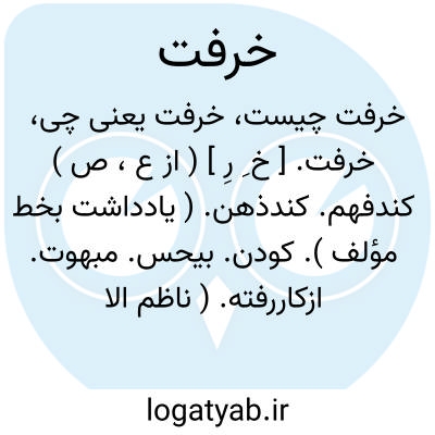 خرفت. [ خ ِ رِ ] ( از ع، ص ) کندفهم. کندذهن. ( یادداشت بخط مؤلف ). کودن. بیحس. مبهوت. ازکاررفته. ( ناظم الاطباء ).