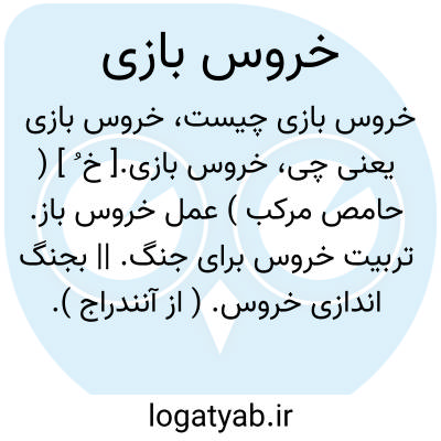 خروس بازی.[ خ ُ ] ( حامص مرکب ) عمل خروس باز. تربیت خروس برای جنگ. || بجنگ اندازی خروس. ( از آنندراج ). || مکاری. حیالی. ( از آنندراج ):