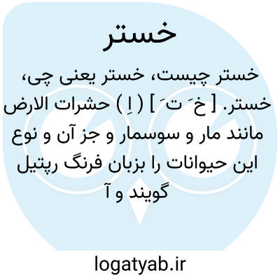 خستر. [ خ َ ت َ ] ( اِ ) حشرات الارض مانند مار و سوسمار و جز آن و نوع این حیوانات را بزبان فرنگ رپتیل گویند و آن طایفه از حیوانات ذی فقاری را نامند که خونشان سرد و پوستشان عریان است و بر روی شکم راه می روند و بعضی با پنجه و بعضی بدون پنجه مانند مار و سوسمار و سنگ پشت و جز آن و در زبان فارسی آنها را خزنده و خست و خستو و گردشنده و مخنده و مخیده و مستو نیز گویند. ( ناظم الاطباء ). خزنده. ( شرفنامه منیری ) ( انجمن آرای ناصری ). رجوع به خزندگان شود. || حشره. ( السامی فی الاسامی ). ج، خستران. ( یادداشت بخط مؤلف ).