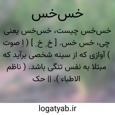 خس خس. [ خ ِ خ ِ ] ( اِ صوت ) آوازی که از سینه شخصی برآید که مبتلا به نفس تنگی باشد. ( ناظم الاطباء ). || حکایت صوت سینه سرماخورده گاه تنفس. حکایت صوت سینه سخت گرفته. حکایت آواز شش بیمار. ( یادداشت بخط مؤلف ).