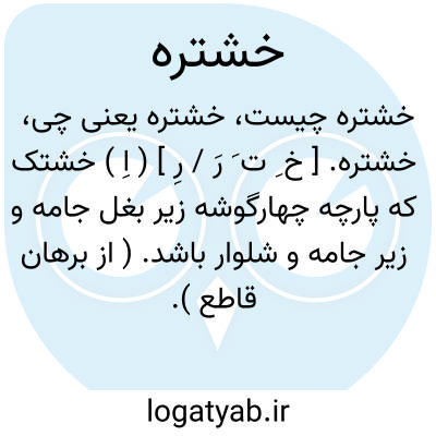خشتره. [ خ ِ ت َ رَ / رِ ] ( اِ ) خشتک که پارچه چهارگوشه زیر بغل جامه و زیر جامه و شلوار باشد. ( از برهان قاطع ). رجوع به خشتچه و خشتک شود.
