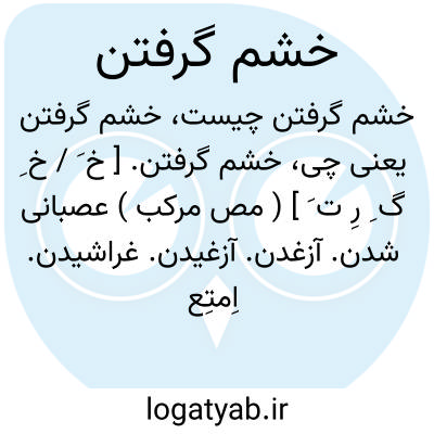 خشم گرفتن. [ خ َ / خ ِ گ ِ رِ ت َ ] ( مص مرکب ) عصبانی شدن. آزغدن. آزغیدن. غراشیدن. اِمتِعاض؛ خشمگین شدن. اغتیاظ. تَغَضﱡب. تَضَرﱡم. تَغَیﱡظ. حَرَد. احتلاط. حلط. حَنَق. ( یادداشت بخط مؤلف ): منصور نامه بخواند، خشم گرفت. ( تاریخ سیستان ).