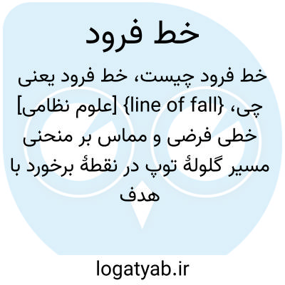 {line of fall} [علوم نظامی] خطی فرضی و مماس بر منحنی مسیر گلولۀ توپ در نقطۀ برخورد با هدف