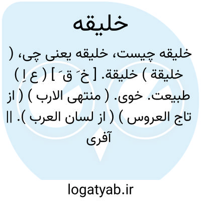 ( اسم ) ۱ - سرشت نهاد طبیعت. ۲ - خوی عادت. ۳ - آفرید. خدا. ۴ - مردم. جمع: خلائق ( خلایق ).