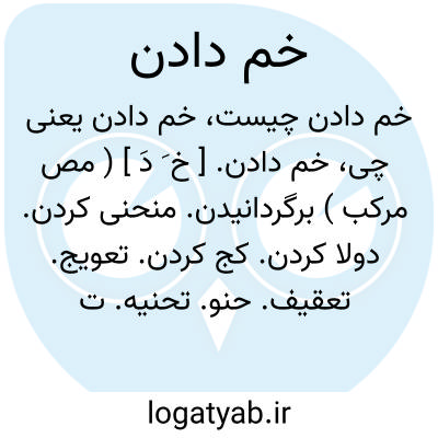 خم دادن. [ خ َ دَ ] ( مص مرکب ) برگردانیدن. منحنی کردن. دولا کردن. کج کردن. تعویج. تعقیف. حنو. تحنیه. تحنیت. عطف. اماله. ( یادداشت بخطمؤلف ):