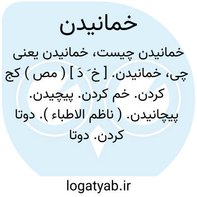 خمانیدن. [ خ َ دَ ] ( مص ) کج کردن. خم کردن. پیچیدن. پیچانیدن. ( ناظم الاطباء ). دوتا کردن. دوتاه کردن. منحنی کردن. کوژ کردن. دولا کردن. خم دادن. خم کردن. چون کمانی کج کردن. تعویج. چون: خمانیدن چوب. خمانیدن پشت کسی را. خمانیدن سقف را با بارهای گران. ( یادداشت بخط مؤلف ). تفرقع؛ بانگ آمدن از انگشتان بخمانیدن. ( منتهی الارب ). قعش؛ خمانیدن سر چوب بسوی خویش. ( منتهی الارب ). || کج کردن. تاب دادن. ( ناظم الاطباء ). || تقلید کردن گفتگو و حرکات و سکنات مردم را بطریق مسخرگی. ( از ناظم الاطباء ).