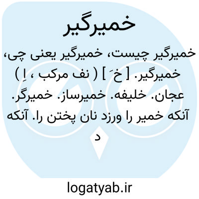 خمیرگیر. [ خ َ ] ( نف مرکب، اِ ) عجان. خلیفه. خمیرساز. خمیرگر. آنکه خمیر را ورزد نان پختن را. آنکه در نانوایی خمیر نان آماده کند. در نانوائی آنکه خمیر را ورزد و برای کنده گرفتن مهیا کند. ( یادداشت بخط مؤلف ).