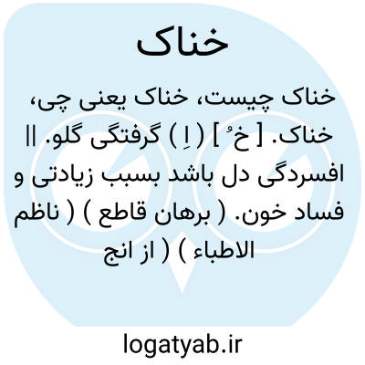 خناک. [ خ ُ ] ( اِ ) گرفتگی گلو. || افسردگی دل باشد بسبب زیادتی و فساد خون. ( برهان قاطع ) ( ناظم الاطباء ) ( از انجمن آرای ناصری ):
