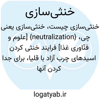 {neutralization} [علوم و فنّاوری غذا] فرایند خنثی کردن اسیدهای چرب آزاد با قلیا، برای جدا کردن آنها از روغن