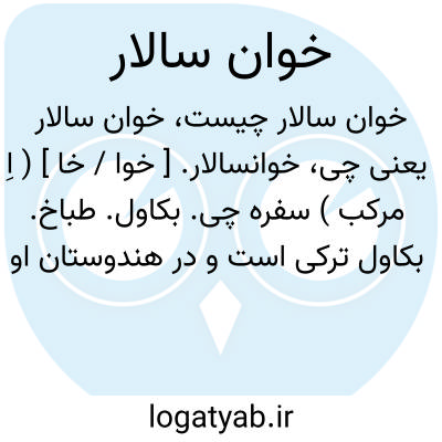 خوانسالار. [ خوا / خا ] ( اِ مرکب ) سفره چی. بکاول. طباخ. بکاول ترکی است و در هندوستان او را چاشنی گیر خوانند. ( برهان ) ( ناظم الاطباء ). عُجاهِن. ( بحر الجواهر ): آتش در هیزم زدند و غلامان خوانسالار با بلسکها درآمدند. ( تاریخ بیهقی ). [ عبدالرحمن محمد الاشعث ] را یکی مرغ فربه بود بر خوان همی خورد او را خوش آمد خوان سالار را پرسید که حال این مرغ بازگوی گفت آن مرغی چند بود که عبداﷲبن عامر فرستاده است همه همچنین است. ( تاریخ سیستان ). دو جوان بودند یکی شراب دار عزیز و یکی خوان سالار ایشان را آوردند بزندان. ( قصص الانبیاء ). قبطی را دید که خوانسالار فرعون بود. ( قصص الانبیاء ). || ناظر. || لقب ناظر پادشاه. ( ناظم الاطباء ).