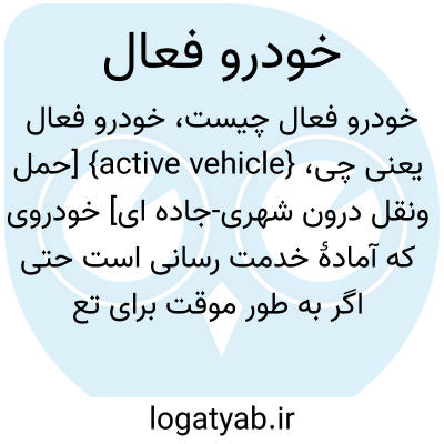 {active vehicle} [حمل ونقل درون شهری-جاده ای] خودروی که آمادۀ خدمت رسانی است حتی اگر به طور موقت برای تعمیرات جزئی یا بازدیدهای عادی از خط خارج شده باشد