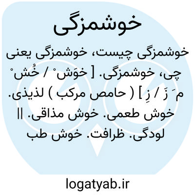 خوشمزگی. [ خوَش ْ / خُش ْ م َ زَ / زِ ] ( حامص مرکب ) لذیذی. خوش طعمی. خوش مذاقی. || لودگی. ظرافت. خوش طبعی. طیبت. مزاح.