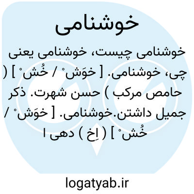 خوشنامی. [ خوَش ْ / خُش ْ ] ( اِخ ) دهی است از دهستان ابهررود بخش ابهر شهرستان زنجان. واقع در جنوب باختری ابهر کنار راه عمومی قیدار به آب گرم. کوهستانی و سردسیر با 382 تن سکنه. ( از فرهنگ جغرافیایی ایران ج 2 ).